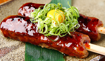 地鶏、銘柄豚を直火であぶり、炭の良い香りがついた、お酒にもごはんにもぴったりの炭火焼です。 -